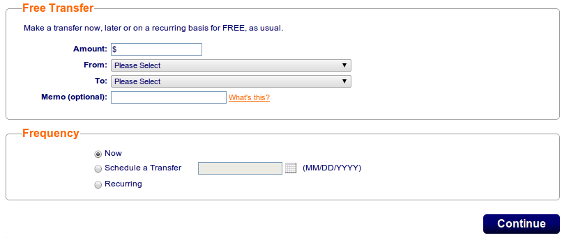 - Transferring: Many online banks offer an interface to transfer money among accounts, including accounts at different banks. It is important to verify that this service is offered and is easy to use, in case money needs to be moved to or from a local credit union or bank. For example, ING Direct's interface is really straightforward: