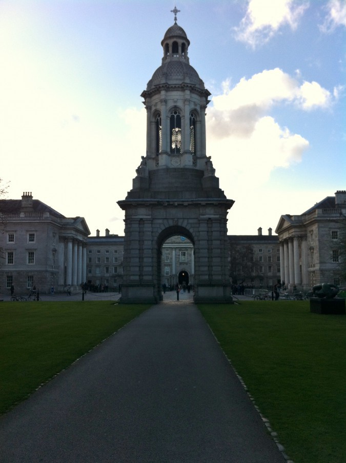 Trinity College, where I went to see The Book of Kells and the amazing “long room” of the old library. (I wasn’t allowed to take pictures inside, but I bought a postcard!)